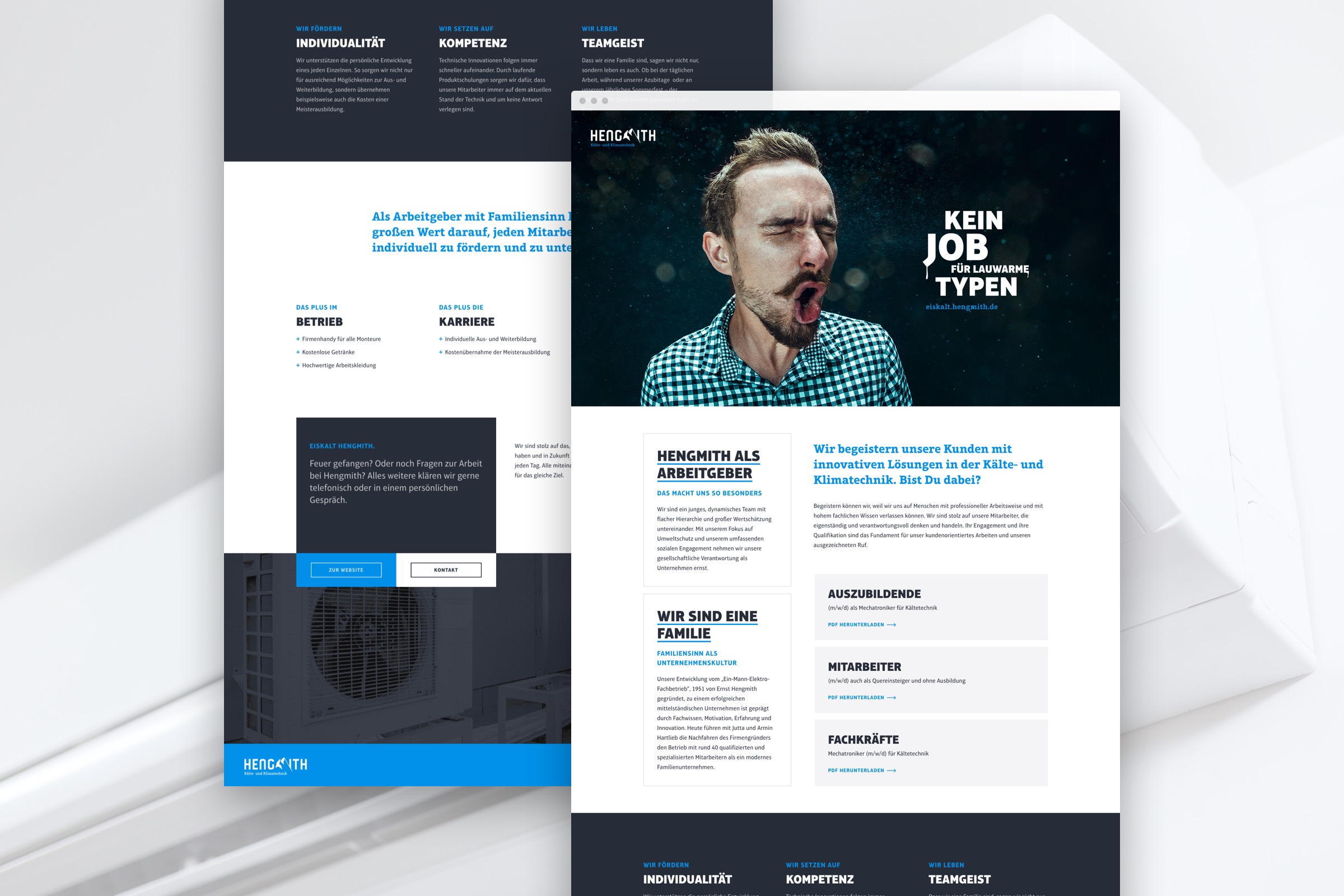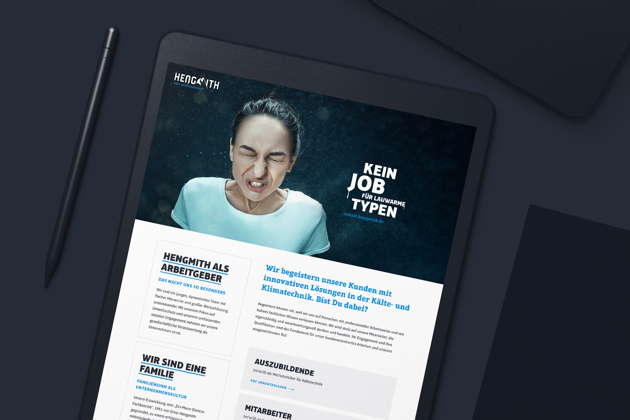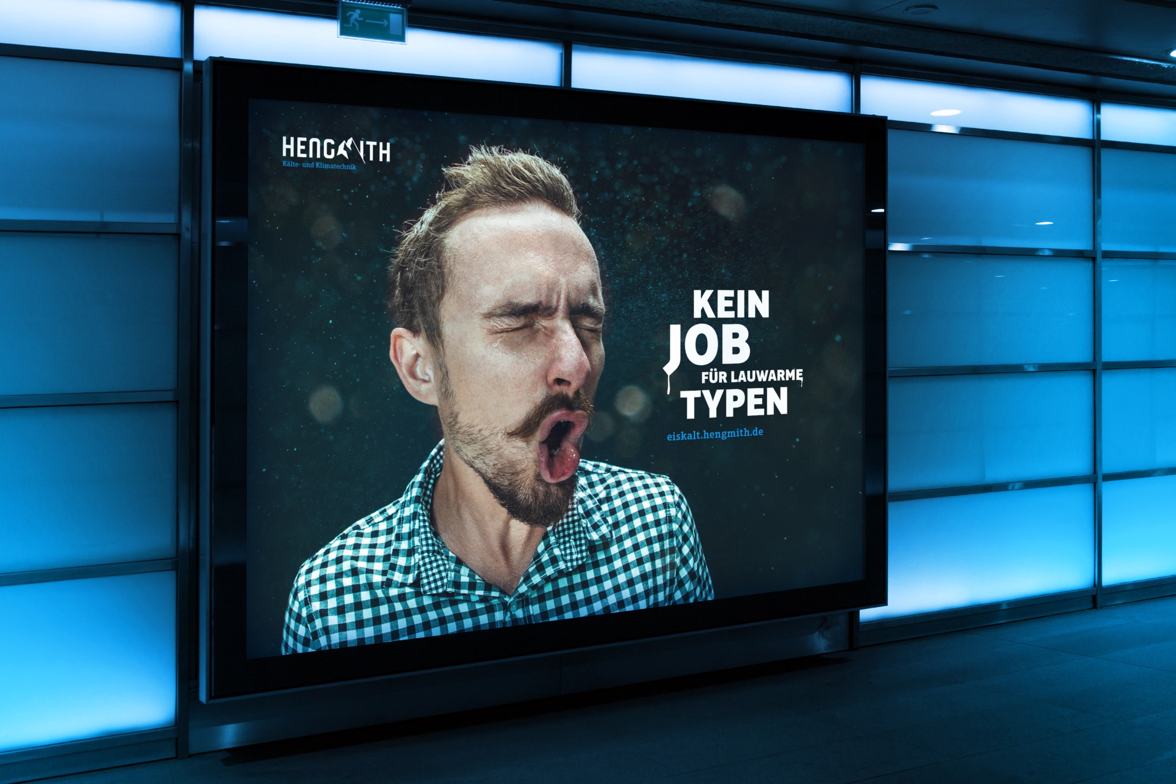 Das mittelständische Unternehmen Hengmith begeistert seine Kunden wie auch seine Mitarbeiter mit innovativen und cleveren Lösungen in der Kälte- und Klimatechnik. Der allseits spürbare Fachkräftemangel macht jedoch auch vor dieser Branche nicht halt. Grund genug für den Geschäftsführer, von nun an mit uns gemeinsame Sache zu machen. Mit einer starken Mitarbeiterkampagne konnten wir schnell überzeugen, und die parallel entwickelte Brand Identity wird nun in allen Bereichen des Unternehmens nach und nach umgesetzt.