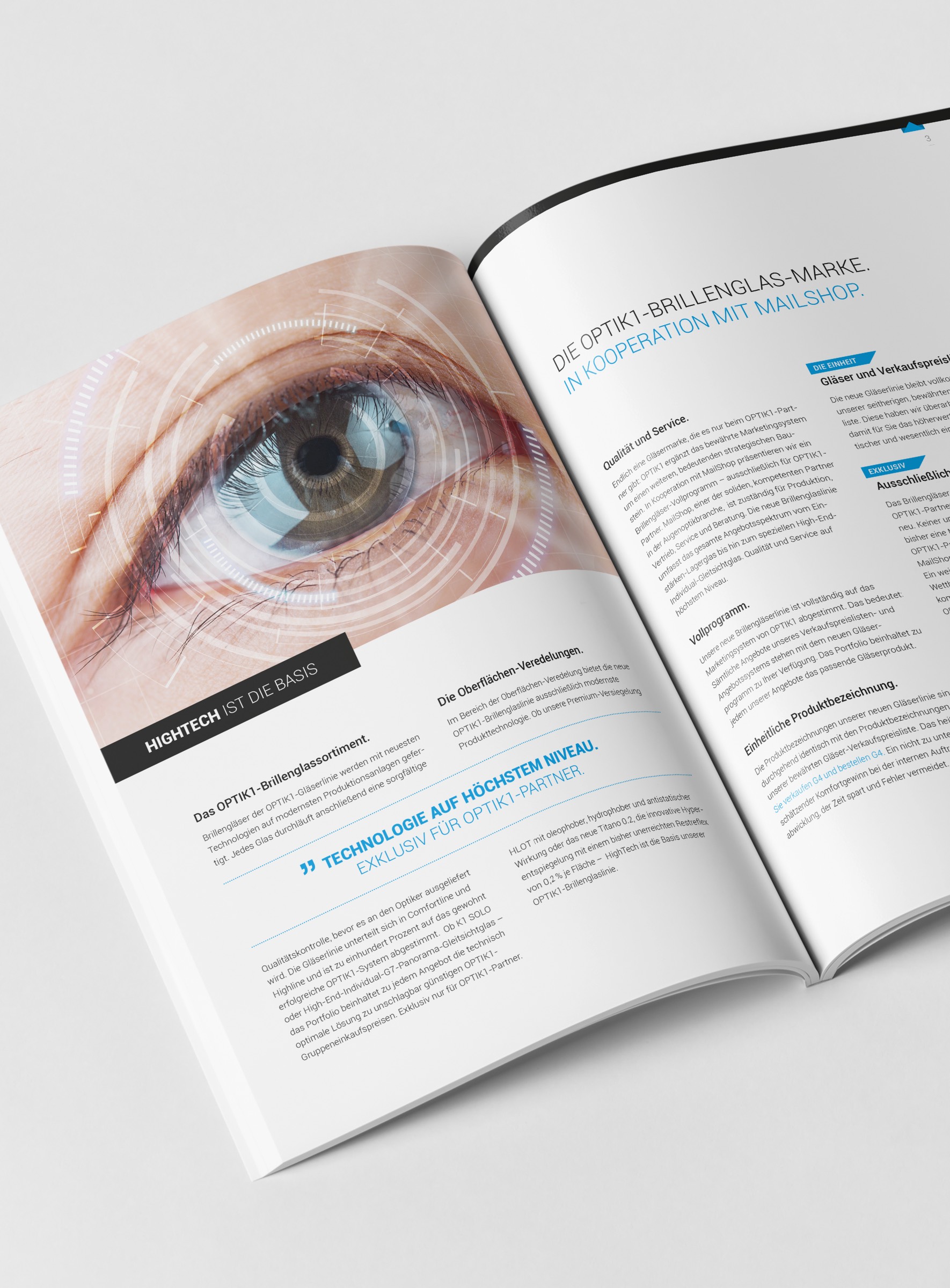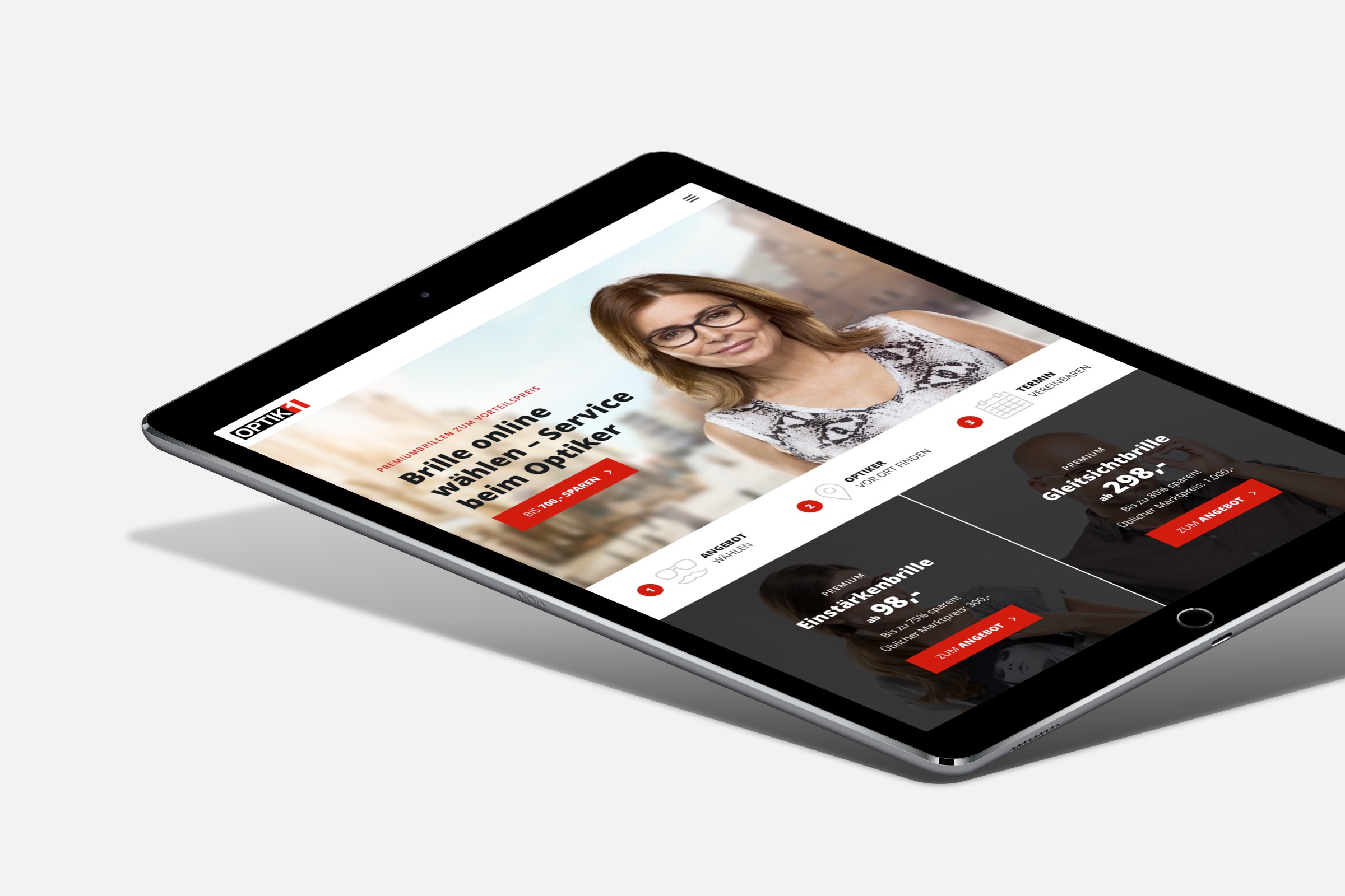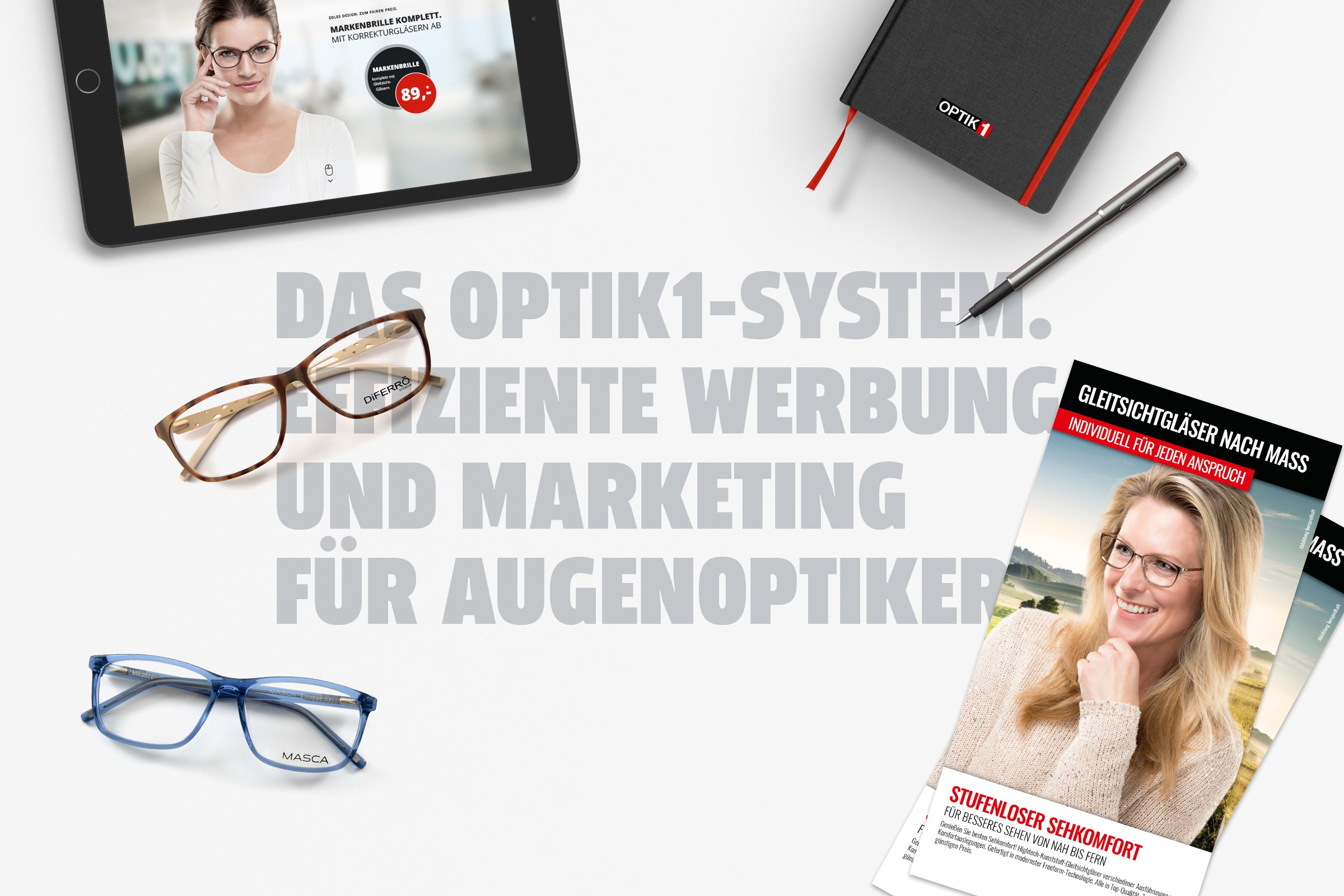 Für den Marketingverbund Optik1 kreierten wir jede Menge Basics für eine frische Markenidentität, die dem stetigen Wachstum des Optikspezialisten Rechnung trägt. Wir produzierten Fotos. Verarbeiteten diese in Composings. Entwarfen Printbroschüren, Werbematerial und Anzeigen. Generierten Content. Stemmten das UX und UI Design für den neuen Online-Brillenshop und ein Konfigurations-Tool für Optiker. Und gaben damit Optik1 eine unverkennbare visuelle Identität.