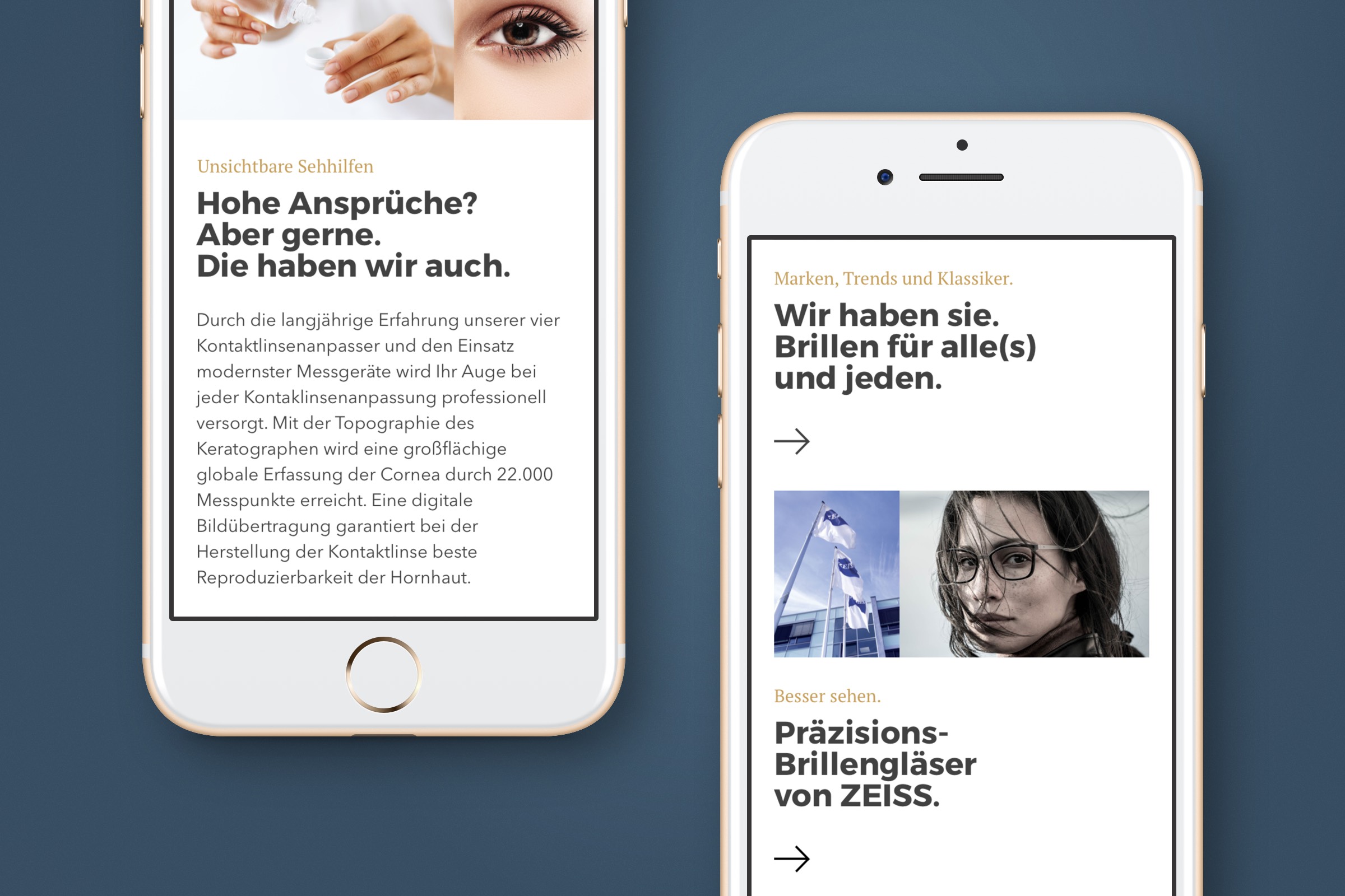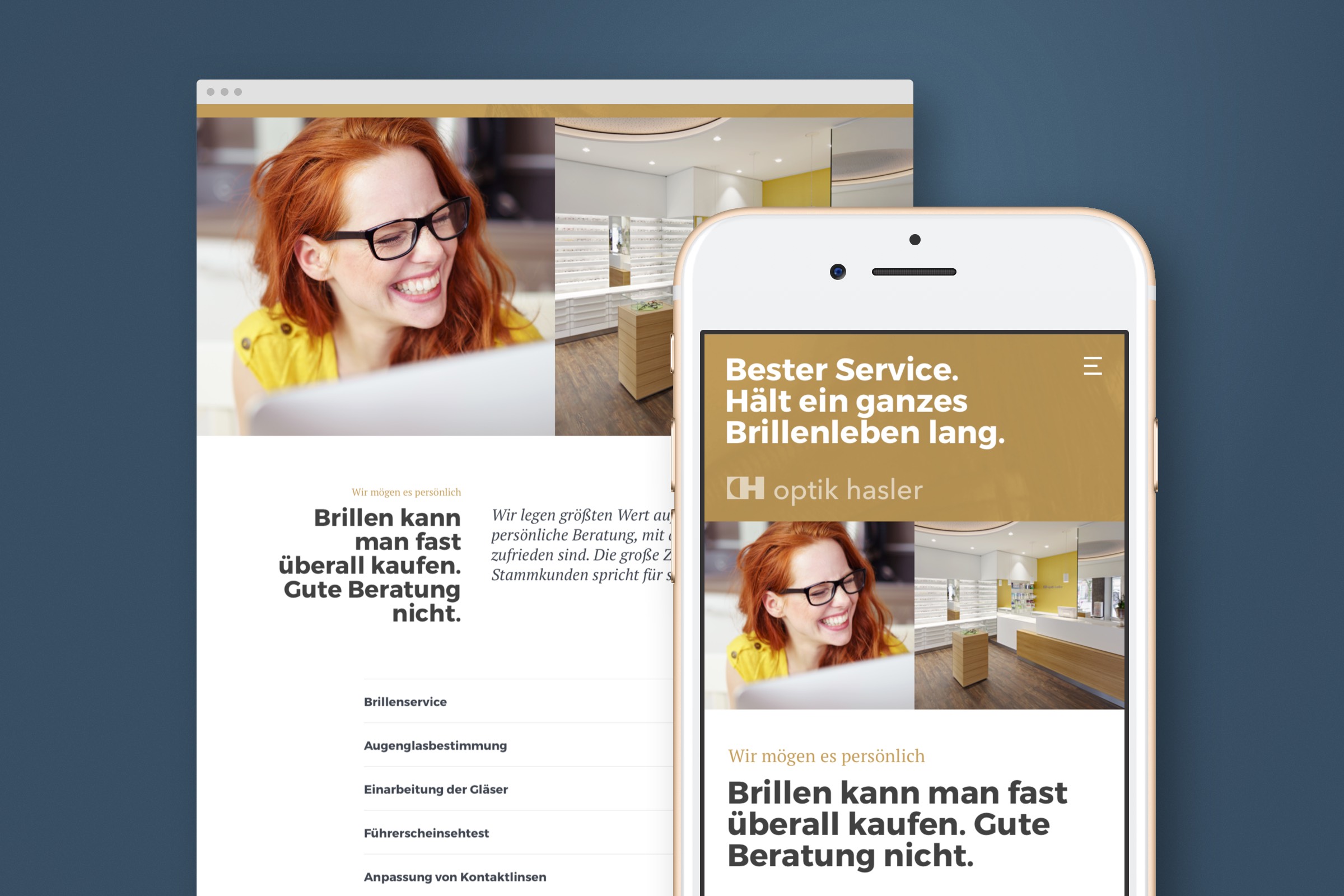 Optik Hasler. Ein absolut sympathisches Team, ein modernes Brillenstudio und ein unternehmerisches Selbstverständnis, in dem auch wir uns wiederfinden. Die alte Onlinepräsenz sprach eine deutlich andere Sprache. Für uns eine tolle Gelegenheit, unser Wissen und Können einzubringen, um die Qualitäten der Optiker im neuen Auftritt sichtbar, lesbar und fühlbar zu machen. Typografie, Tonalität und Content treffen nun den richtigen Ton zwischen Professionalität und Kundennähe.