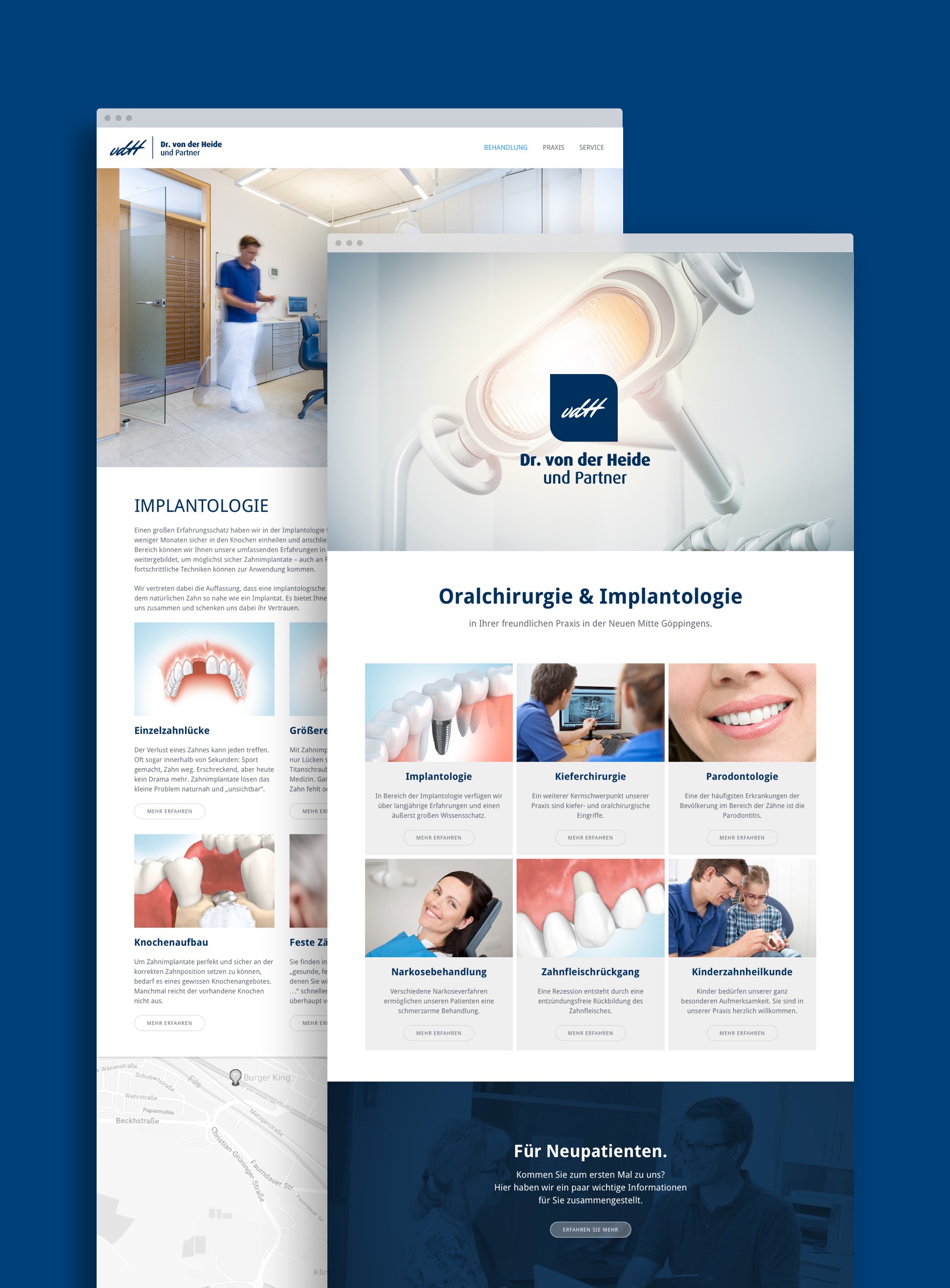 Oralchirurgie und Implantologie sind Themen, die nicht gerade auf leichten Füßen daherkommen. Eine Fülle an Inhalten soll potentielle Patienten sachlich informieren und zugleich ihr Interesse an der Praxis wecken. Eine klare Ansage, den Fokus nicht nur auf gut strukturierten und interessanten Content zu legen. Sondern in gleichem Maße auf ein klares, aufgeräumtes Design, das schnell Vertrauen schafft und den Kunden Ängste nimmt.