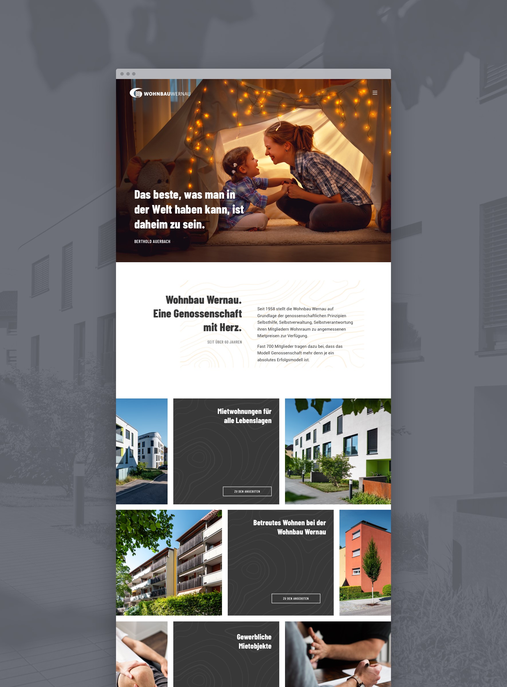 „Eine Genossenschaft mit Herz.“ Mit dieser Aussage im Kopf entwickelten wir Design und Inhalt für eine Wohnbaugenossenschaft, die mehr sein möchte als nur ein Wohnungsverwalter. Wir entwarfen einen Webauftritt, der sich nah, vertraut und verlässlich anfühlt. Eine Präsenz, die das Angebot übersichtlich präsentiert, dabei aber keinen Zweifel daran lässt, wie wichtig dem Unternehmen das gute und persönliche Verhältnis zu seinen Klienten ist. Mustergültig erledigt.