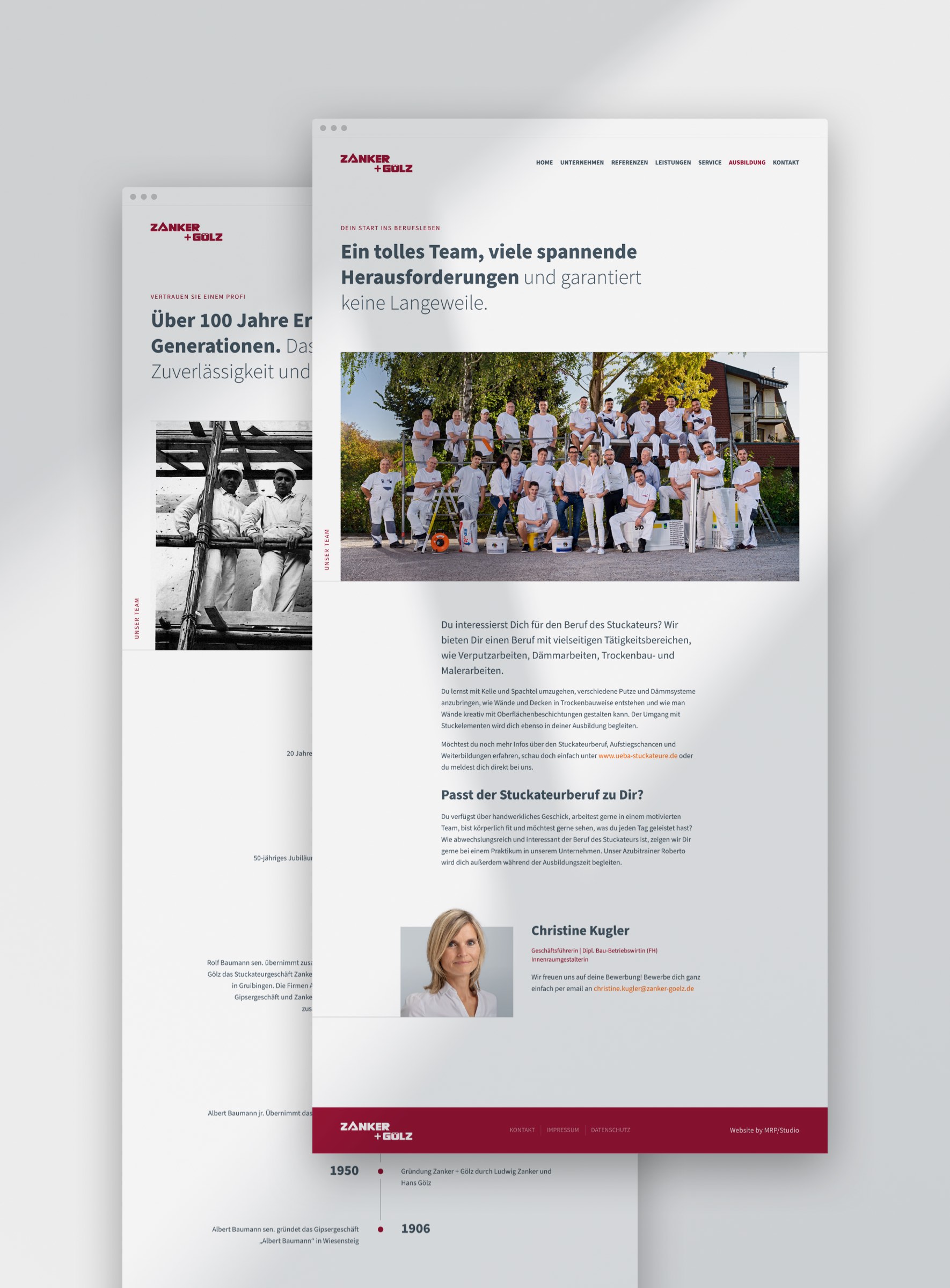Über 100 Jahre Erfahrung aus drei Generationen. Das ergibt Kontinuität, Zuverlässigkeit und jede Menge Kompetenz. Der familiengeführte Handwerksbetrieb agiert seit Jahrzehnten äußerst erfolgreich am Markt. Allein die Wahrnehmung in der digitalen Welt wurde bisher kaum beachtet. Höchste Zeit also, das zu ändern. Mit einem neuen Internetauftritt schaffen wir eine digitale Präsenz mit dem klaren Ziel, das Unternehmen perfekt für die Zukunft zu rüsten. Schlicht und schnörkellos präsentieren wir klassisches Handwerk mit einem umfassenden Leistungsportfolio, vielen Referenzen und vor allem den Menschen hinter dem Unternehmen.